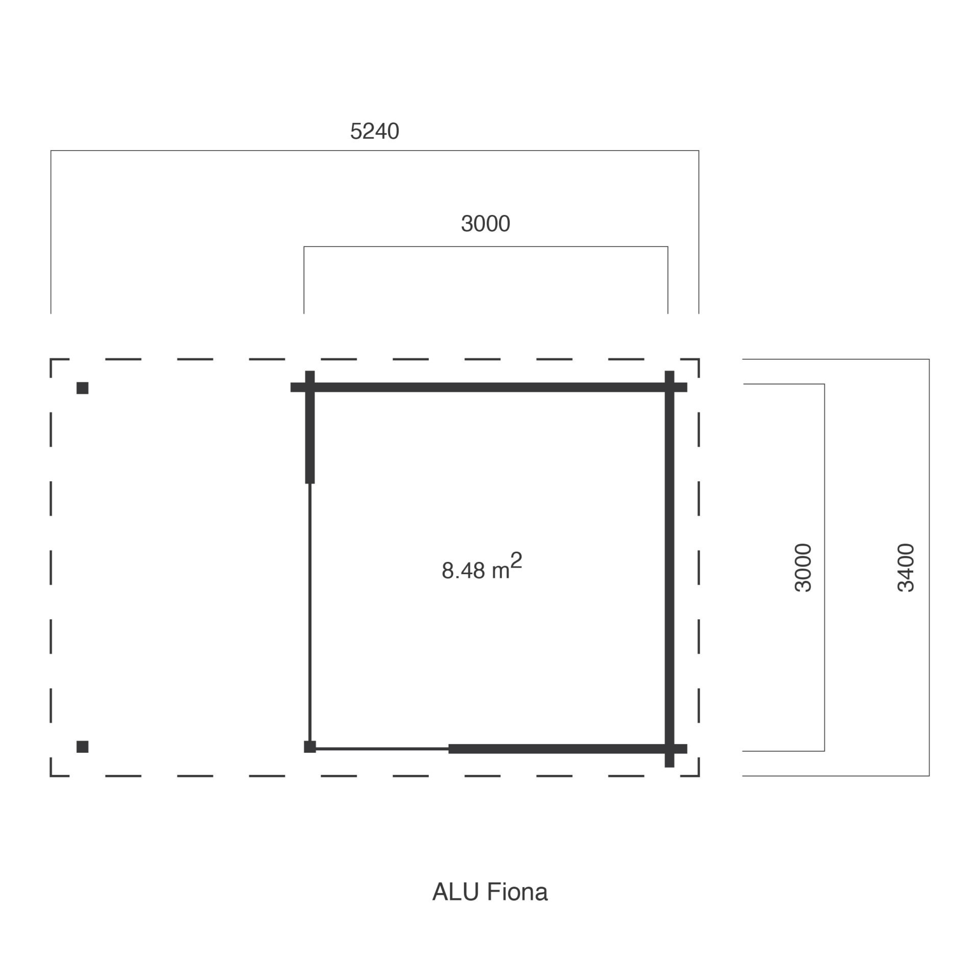 Immutatud alusraam, seinaprussid, põrand, katuselaud, lükanduks, kinnitusvahendid ja paigaldusjuhend.