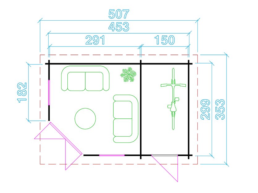 • Seina välismõõt: 299 x 453 cm