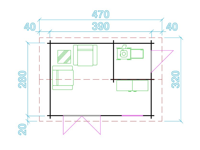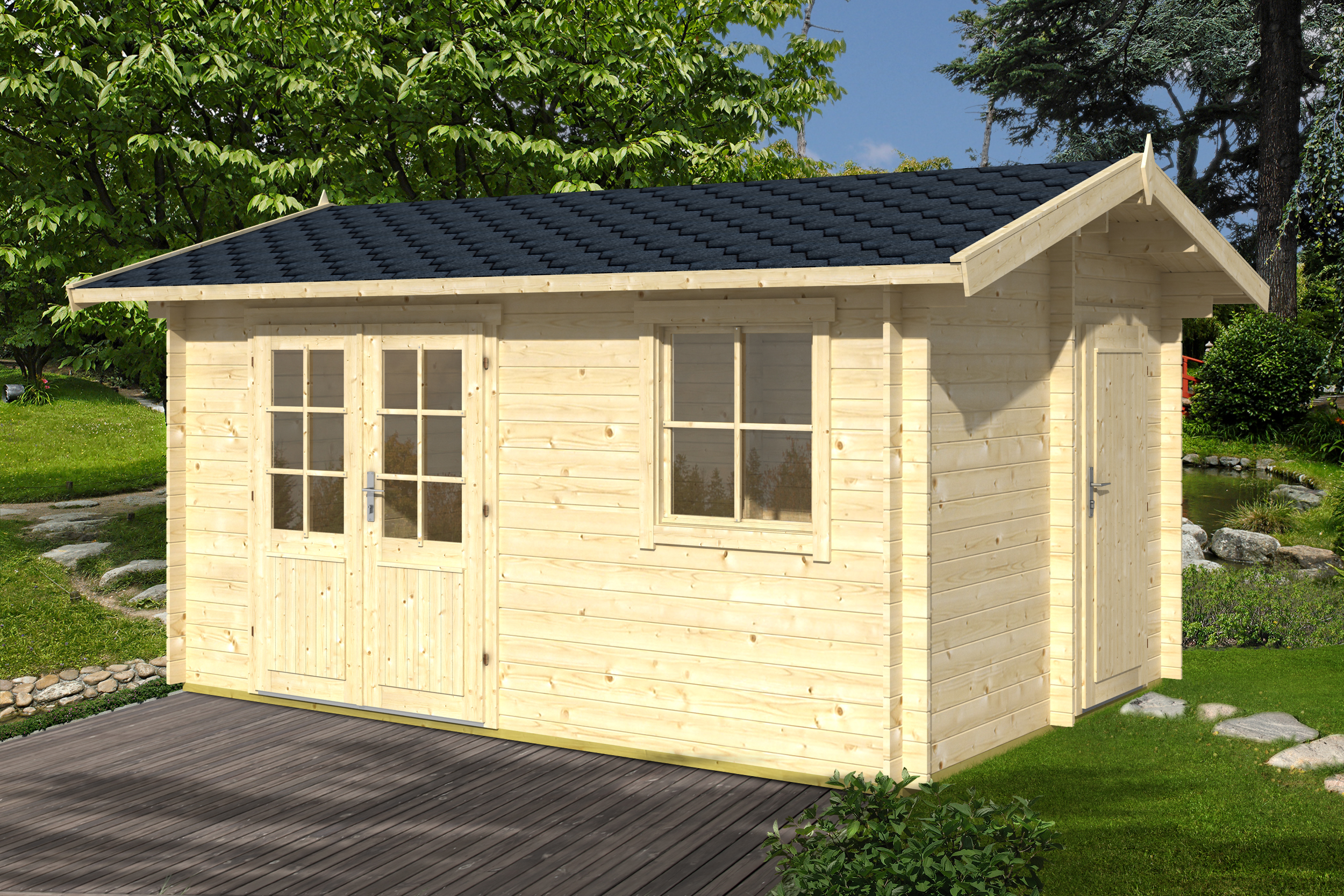 Immutatud alusraam, tapitud seinadetailid, põrandalaud, katuselaud, liimpudiust uks roostevabast plekist lävepakuga, aken, klaas 3mm, kinnitusvahendid ja paigaldusjuhend.