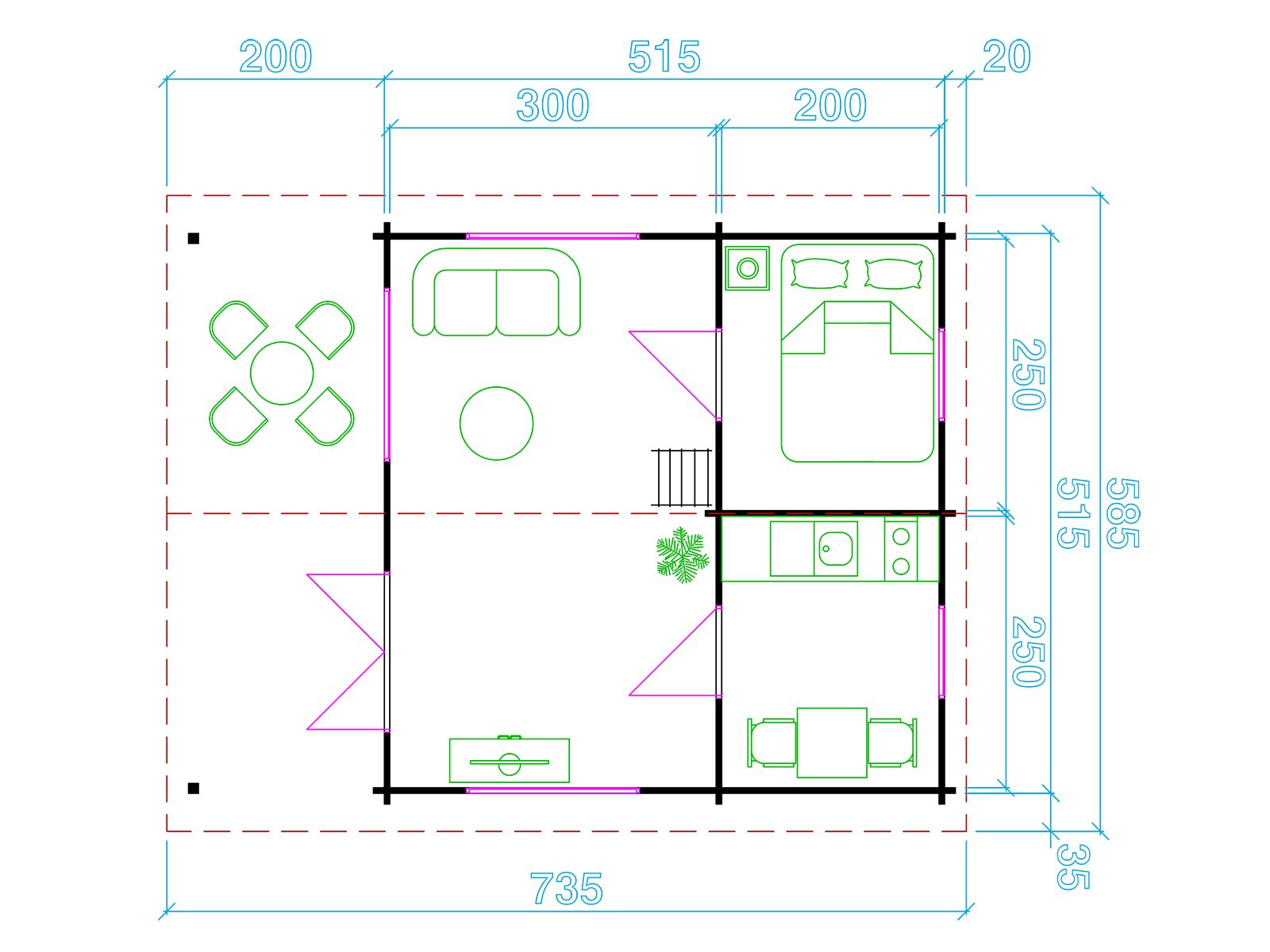 • Seina välismõõt: 515 x 515 cm
