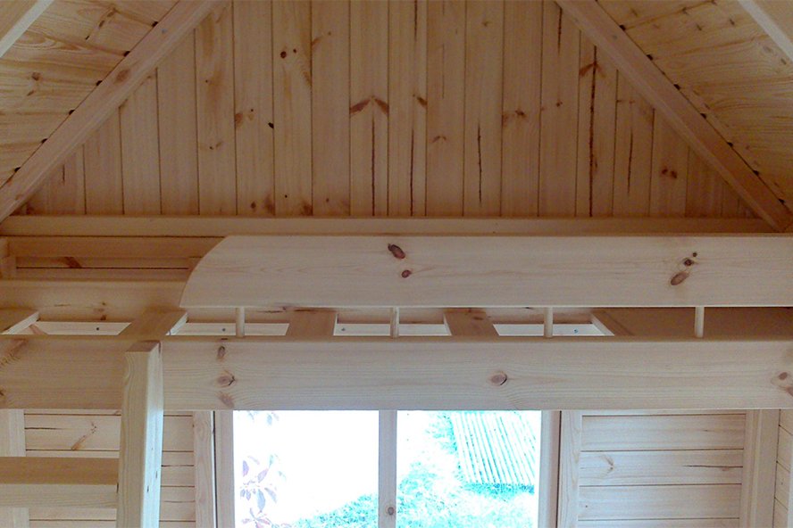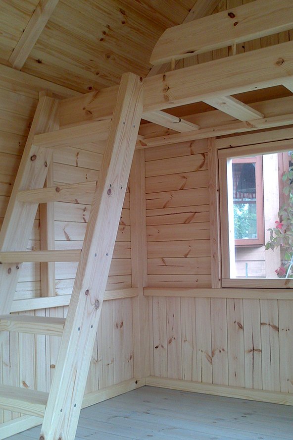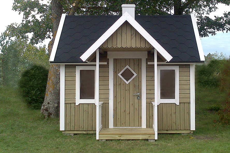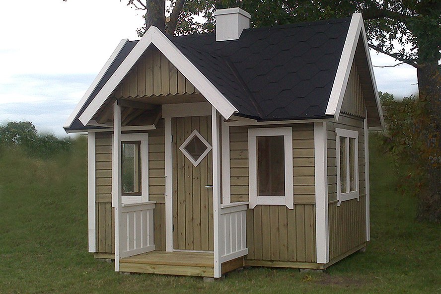 Immutatud alusraam, põranda-, seina- ja katusekilbid, mis on kaetud katusekattega Icopal (must), aknad, uks, kinnitusvahendid ja paigaldusjuhend. Sisustusest on hinna sees magamiskoht ja redel.